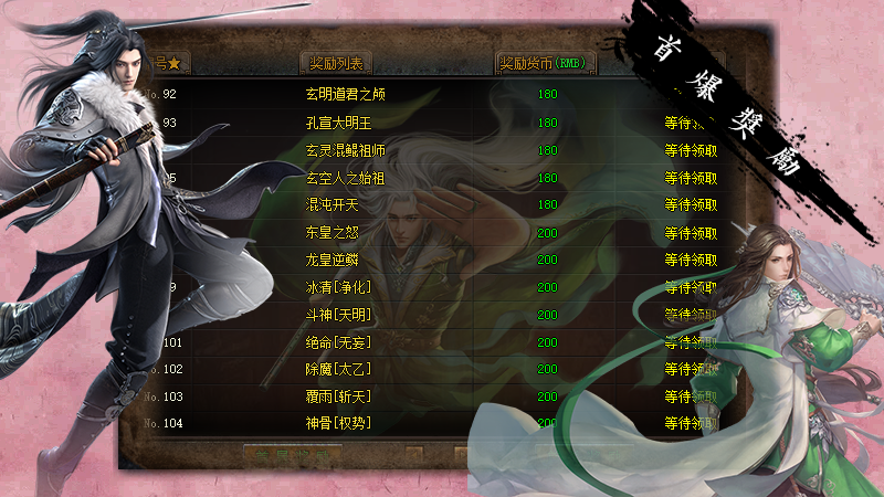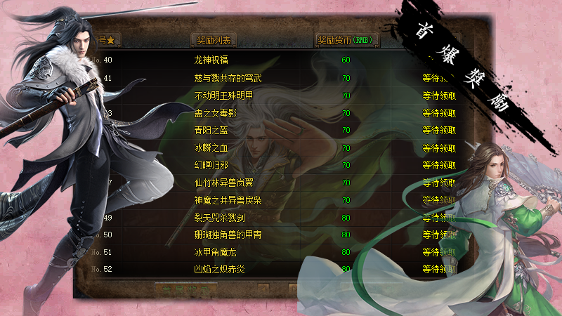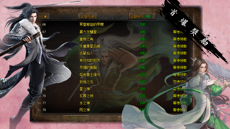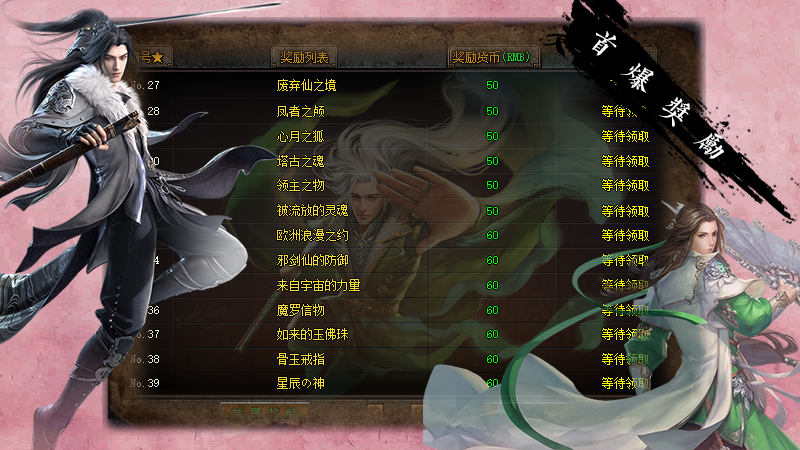 1、每区万元充值限时奖励、永久回收、沙城奖励!2、以上古山海经神话为代表,打造本年度最硬核网游!3、首爆超多,让散人愉快!4、新区第2天合区攻沙,沙奖励自助领取!5、千件专属装备与地图等待您的挑战!6、独家宠物系统养成系统,数种BUFF激活,独家七绝技能!7、散人好混,免费满级,千张专属地图探索!